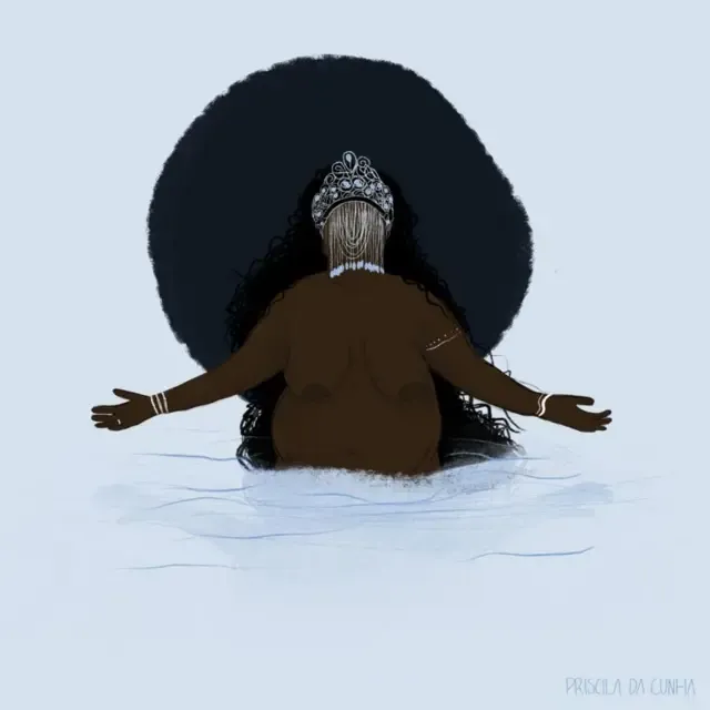 Originalmente uma divindade africana de origem iorubá (Yemọja), associada às águas doces e posteriormente ao mar no Brasil, Iemanjá tem raízes negras, africanas e ancestrais. No entanto, ao observarmos a iconografia popular brasileira, vemos algo diferente: uma mulher branca, de traços europeus, cabelos lisos e longos, vestida de azul.