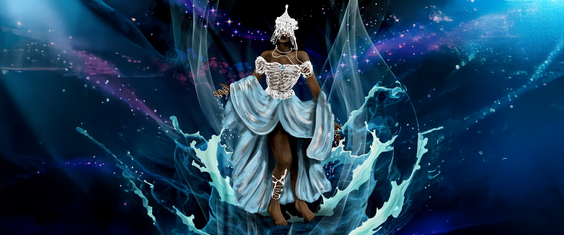 Na tradição iorubá, Yemọja é uma divindade ligada à fertilidade, maternidade e força ancestral. Sua representação está conectada à estética africana: pele negra, corpo simbólico, força matriarcal.